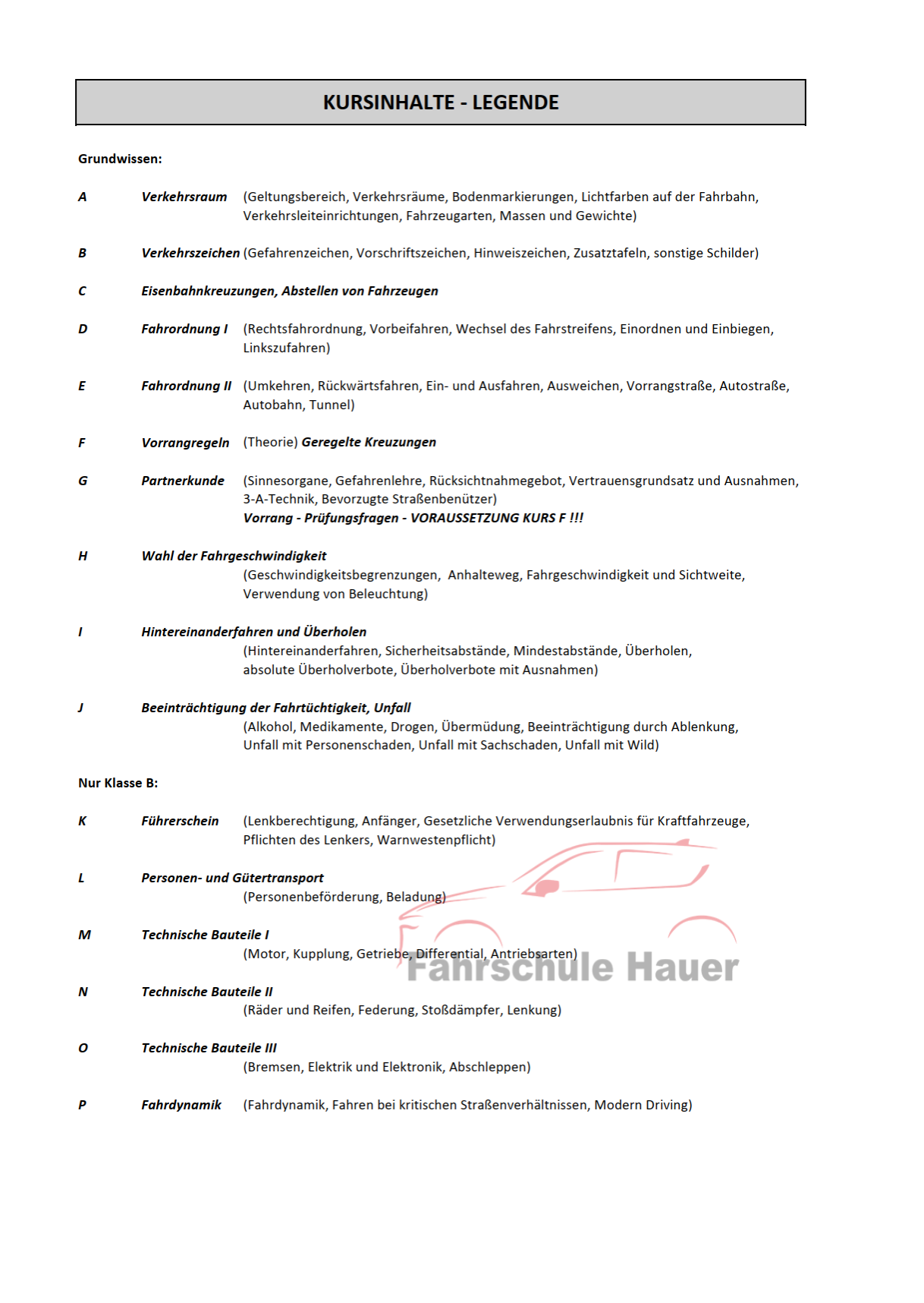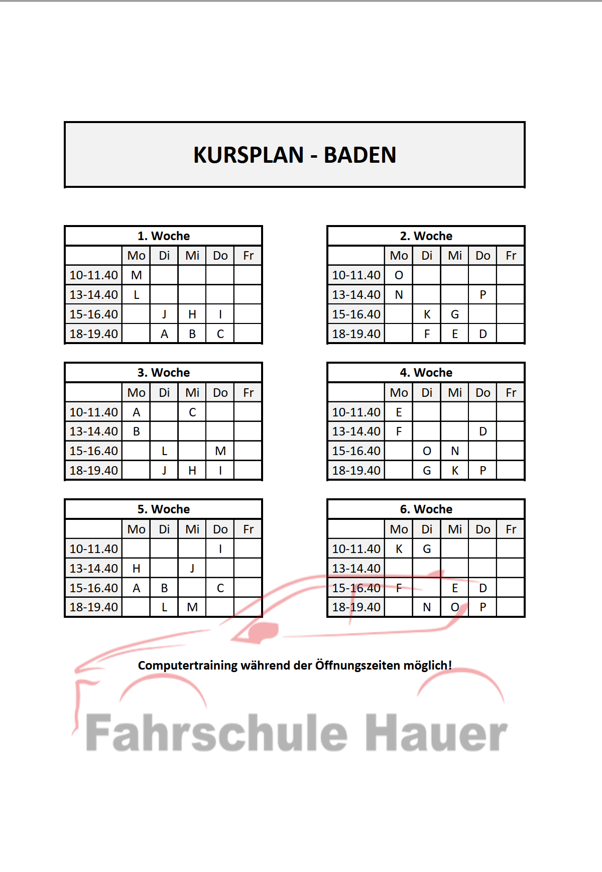 Dein Kursplan in der Fahrschule Hauer - Leobersdorf